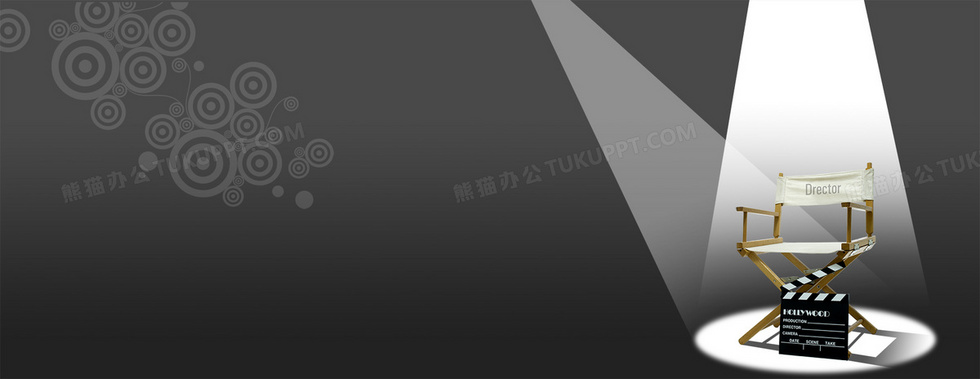 本作品内容为电影导演座椅背景banner设计, 格式为 psd, 图片尺寸为1920 x 743, 作品中背景图片无需修改, 源文件无水印,可以直接使用, 欢迎使用熊猫办公。 如认为平台内容涉嫌侵权,可通过邮件:tousu@tukuppt.com提出书面通知,我们将及时处理。