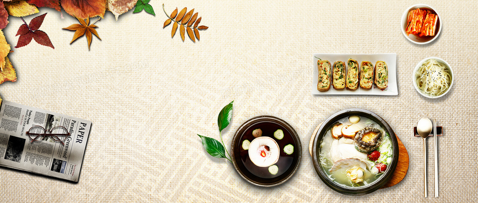 本作品内容为美食秋季落叶报纸中国风棉麻背景banner, 格式为 psd, 图片尺寸为1920 x 818, 作品中背景图片无需修改, 源文件无水印,可以直接使用, 欢迎使用熊猫办公。 如认为平台内容涉嫌侵权,可通过邮件:tousu@tukuppt.com提出书面通知,我们将及时处理。
