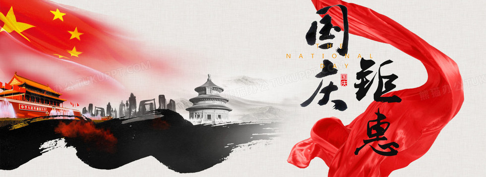 本作品内容为国庆钜惠淘宝促销背景, 格式为 psd, 图片尺寸为1920 x 700, 作品中背景图片无需修改, 源文件无水印,可以直接使用, 欢迎使用熊猫办公。 如认为平台内容涉嫌侵权,可通过邮件:tousu@tukuppt.com提出书面通知,我们将及时处理。