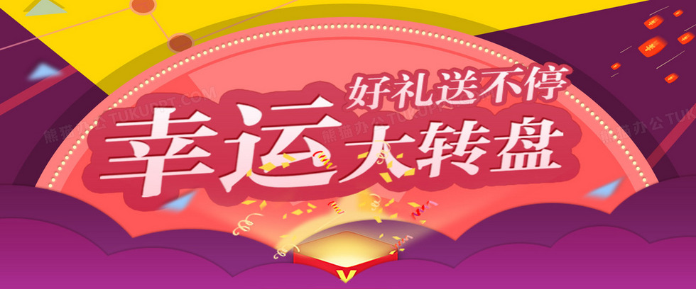 本作品内容为幸运大转盘狂欢背景, 格式为 psd, 图片尺寸为1920 x 800, 作品中背景图片无需修改, 源文件无水印,可以直接使用, 欢迎使用熊猫办公。 如认为平台内容涉嫌侵权,可通过邮件:tousu@tukuppt.com提出书面通知,我们将及时处理。