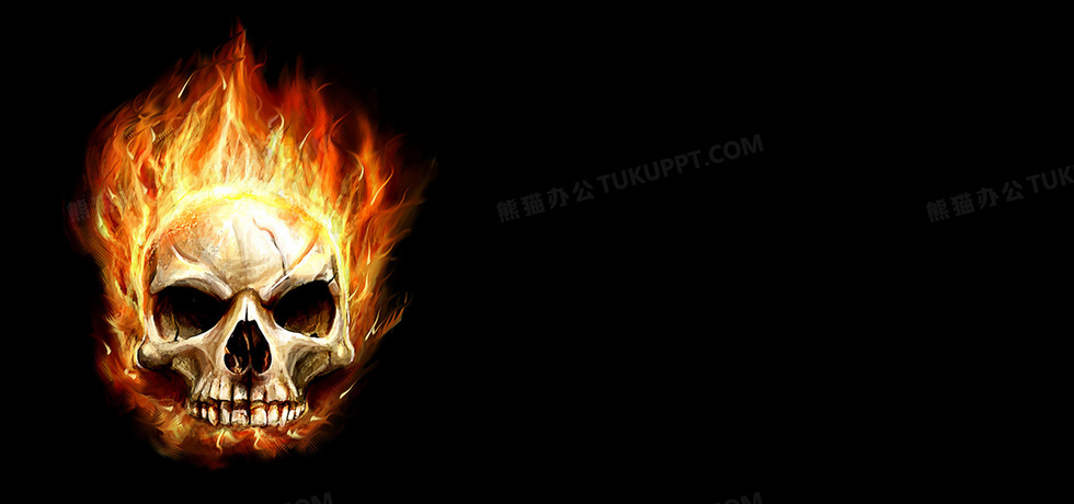 本作品内容为炫酷朋克骷髅火焰, 格式为 psd, 图片尺寸为1920 x 900, 作品中背景图片无需修改, 源文件无水印,可以直接使用, 欢迎使用熊猫办公。 如认为平台内容涉嫌侵权,可通过邮件:tousu@tukuppt.com提出书面通知,我们将及时处理。