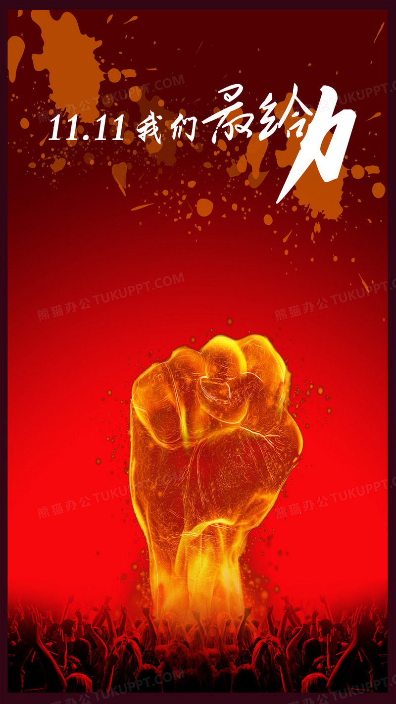 本作品内容为红色双11我们最给力淘宝促销背景, 格式为 psd, 图片尺寸为1080 x 1920, 作品中背景图片无需修改, 源文件无水印,可以直接使用, 欢迎使用熊猫办公。 如认为平台内容涉嫌侵权,可通过邮件:tousu@tukuppt.com提出书面通知,我们将及时处理。