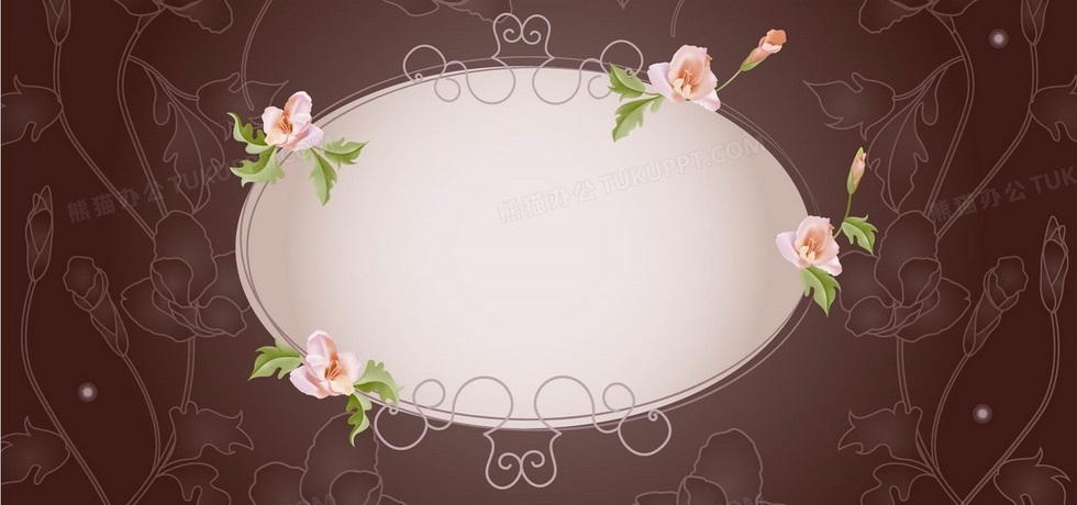 本作品内容为椭圆形花框花卉底纹背景, 格式为 eps, 图片尺寸为1920 x 900, 作品中背景图片无需修改, 源文件无水印,可以直接使用, 欢迎使用熊猫办公。 如认为平台内容涉嫌侵权,可通过邮件:tousu@tukuppt.com提出书面通知,我们将及时处理。