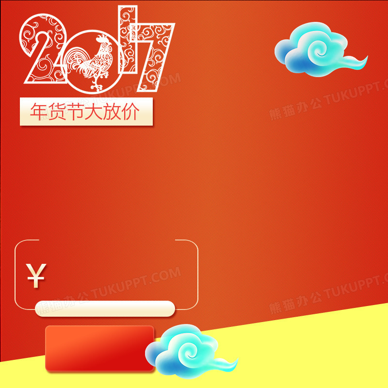 本作品内容为淘宝2017年货大放价喜庆红色PSD主图, 格式为 psd, 图片尺寸为800 x 800, 作品中背景图片无需修改, 源文件无水印,可以直接使用, 欢迎使用熊猫办公。 如认为平台内容涉嫌侵权,可通过邮件:tousu@tukuppt.com提出书面通知,我们将及时处理。