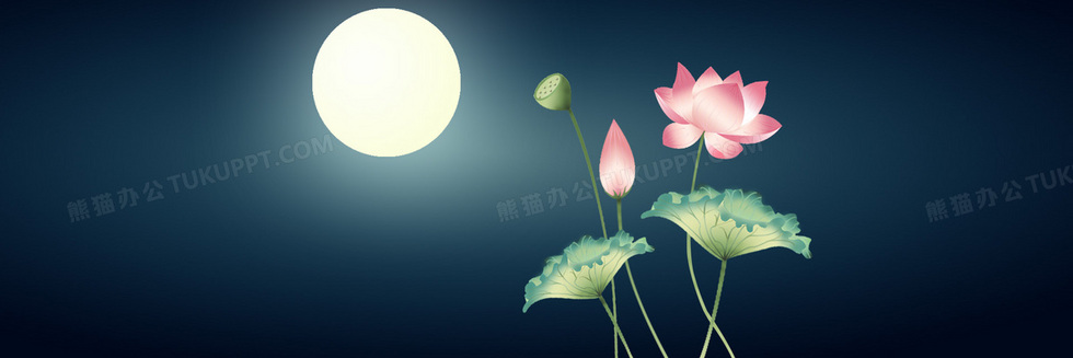 本作品内容为荷塘月色浪漫背景, 格式为 psd, 图片尺寸为1920 x 640, 作品中背景图片无需修改, 源文件无水印,可以直接使用, 欢迎使用熊猫办公。 如认为平台内容涉嫌侵权,可通过邮件:tousu@tukuppt.com提出书面通知,我们将及时处理。