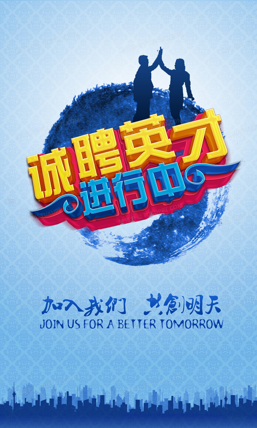 本作品内容为诚聘英才, 格式为 psd, 图片尺寸为1240 x 2067, 作品中背景图片无需修改, 源文件无水印,可以直接使用, 欢迎使用熊猫办公。 如认为平台内容涉嫌侵权,可通过邮件:tousu@tukuppt.com提出书面通知,我们将及时处理。