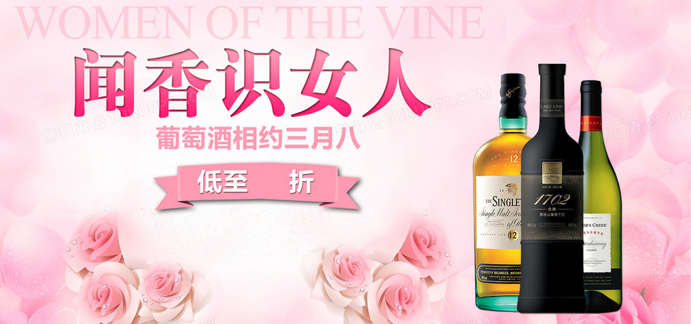 本作品内容为三八节粉色系葡萄酒banner, 格式为 psd, 图片尺寸为1920 x 900, 作品中背景图片无需修改, 源文件无水印,可以直接使用, 欢迎使用熊猫办公。 如认为平台内容涉嫌侵权,可通过邮件:tousu@tukuppt.com提出书面通知,我们将及时处理。
