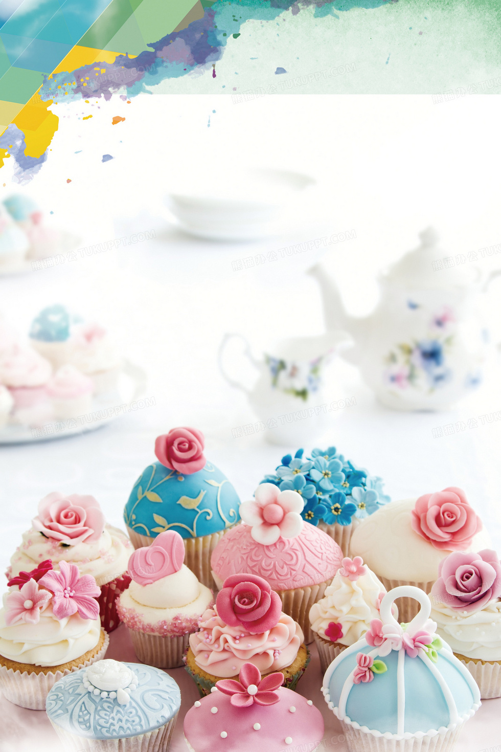 本作品内容为可爱漂亮小蛋糕下午茶背景, 格式为 psd, 图片尺寸为2115 x 3173, 作品中背景图片无需修改, 源文件无水印,可以直接使用, 欢迎使用熊猫办公。 如认为平台内容涉嫌侵权,可通过邮件:tousu@tukuppt.com提出书面通知,我们将及时处理。