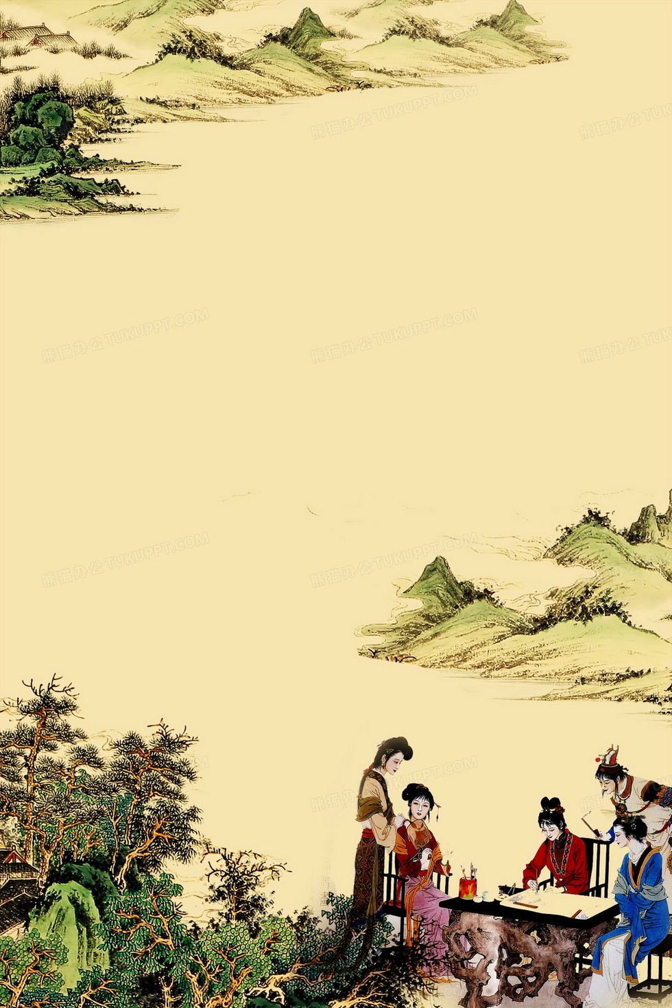 本作品内容为复古中国画背景素材, 格式为 psd, 图片尺寸为2200 x 3299, 作品中背景图片无需修改, 源文件无水印,可以直接使用, 欢迎使用熊猫办公。 如认为平台内容涉嫌侵权,可通过邮件:tousu@tukuppt.com提出书面通知,我们将及时处理。