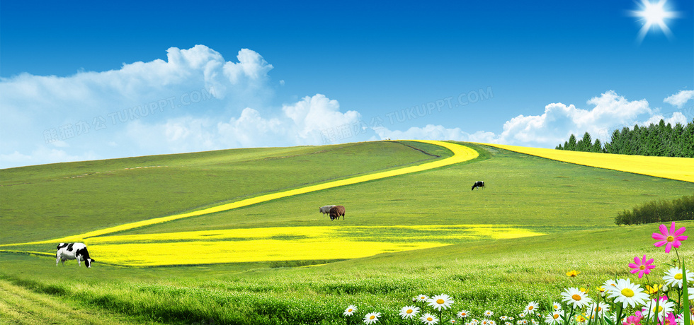 本作品内容为蓝天白云奶牛牛奶广告, 格式为 psd, 图片尺寸为1920 x 900, 作品中背景图片无需修改, 源文件无水印,可以直接使用, 欢迎使用熊猫办公。 如认为平台内容涉嫌侵权,可通过邮件:tousu@tukuppt.com提出书面通知,我们将及时处理。