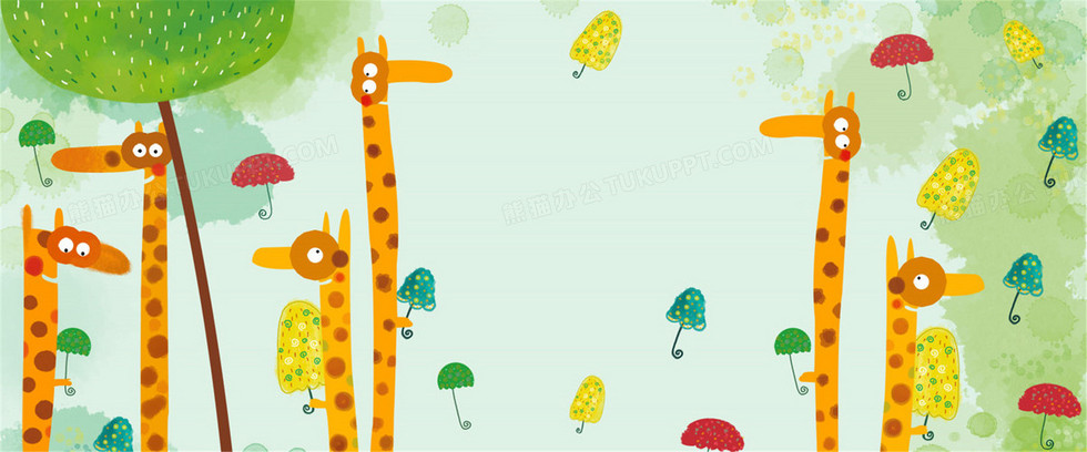 本作品内容为长颈鹿卡通, 格式为 jpg, 图片尺寸为1920 x 800, 作品中背景图片无需修改, 源文件无水印,可以直接使用, 欢迎使用熊猫办公。 如认为平台内容涉嫌侵权,可通过邮件:tousu@tukuppt.com提出书面通知,我们将及时处理。