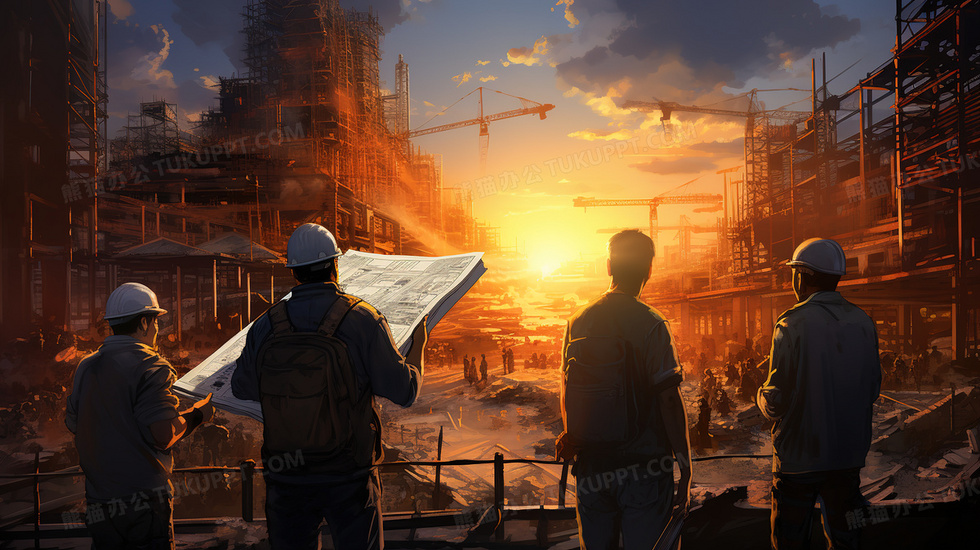 本作品内容为工程师看着前方的建筑工地监督施工情况创意插画, 格式为 jpg, 大小6 MB, 图片尺寸为2912 x 1632, 源文件无水印, 欢迎使用熊猫办公。 如认为平台内容涉嫌侵权,可通过邮件:tousu@tukuppt.com提出书面通知,我们将及时处理。