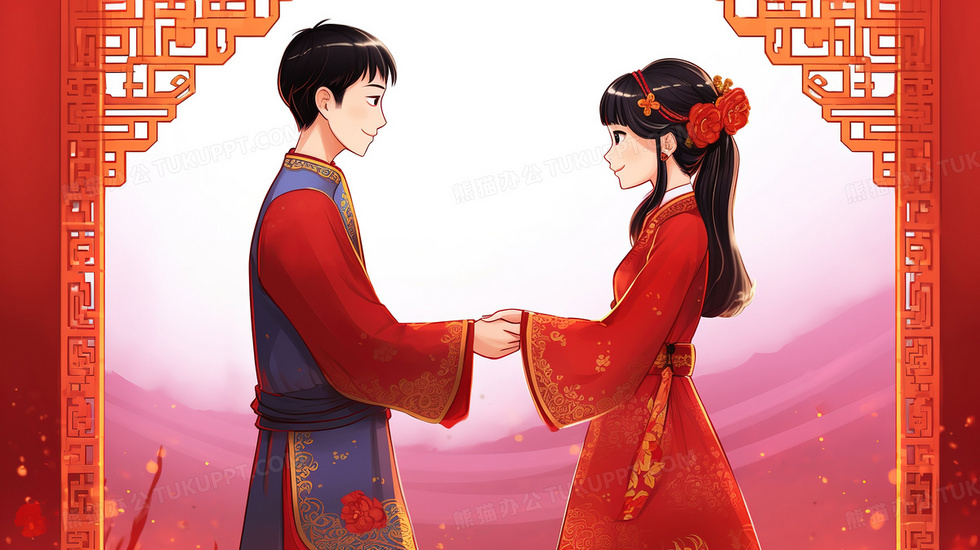 本作品内容为中式婚礼上新郎新娘牵手相视而笑, 格式为 jpg, 大小2 MB, 图片尺寸为2912 x 1632, 源文件无水印, 欢迎使用熊猫办公。 如认为平台内容涉嫌侵权,可通过邮件:tousu@tukuppt.com提出书面通知,我们将及时处理。
