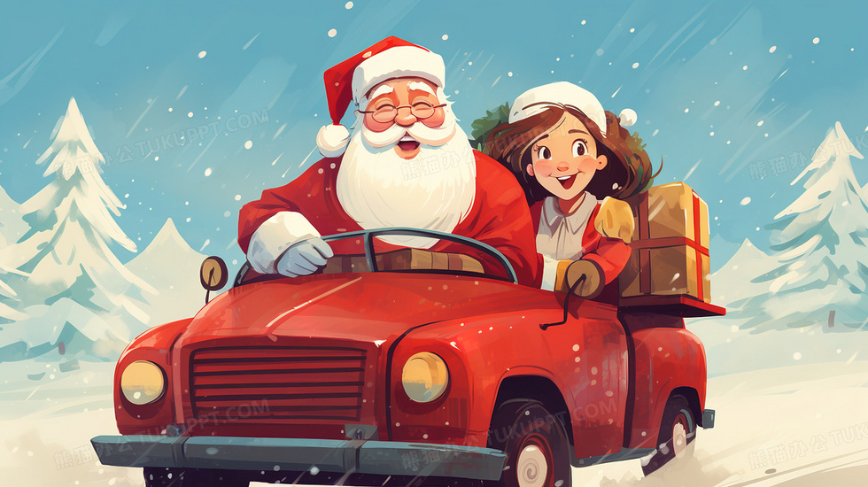 本作品内容为圣诞节圣诞老人开车送礼物插画, 格式为 jpg, 大小5 MB, 图片尺寸为2912 x 1632, 源文件无水印, 欢迎使用熊猫办公。 如认为平台内容涉嫌侵权,可通过邮件:tousu@tukuppt.com提出书面通知,我们将及时处理。