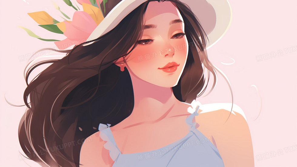 本作品内容为戴帽子的长发美丽女人插画, 格式为 jpg, 大小4 MB, 图片尺寸为2912 x 1632, 源文件无水印, 欢迎使用熊猫办公。 如认为平台内容涉嫌侵权,可通过邮件:tousu@tukuppt.com提出书面通知,我们将及时处理。