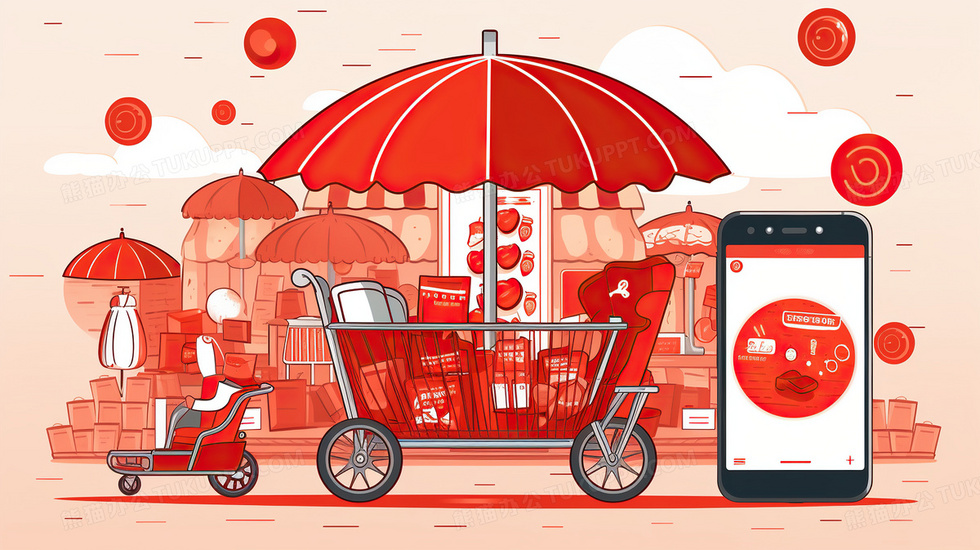 本作品内容为红色喜庆场景电商线上年货节购物促销插画, 格式为 jpg, 大小5 MB, 图片尺寸为2912 x 1632, 源文件无水印, 欢迎使用熊猫办公。 如认为平台内容涉嫌侵权,可通过邮件:tousu@tukuppt.com提出书面通知,我们将及时处理。