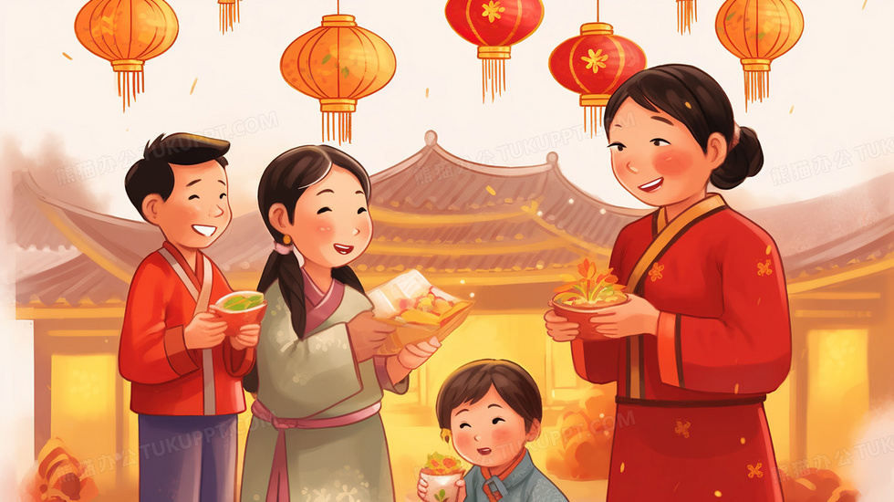 本作品内容为家庭成员参加春节庆典插画, 格式为 jpg, 大小5 MB, 图片尺寸为2912 x 1632, 源文件无水印, 欢迎使用熊猫办公。 如认为平台内容涉嫌侵权,可通过邮件:tousu@tukuppt.com提出书面通知,我们将及时处理。