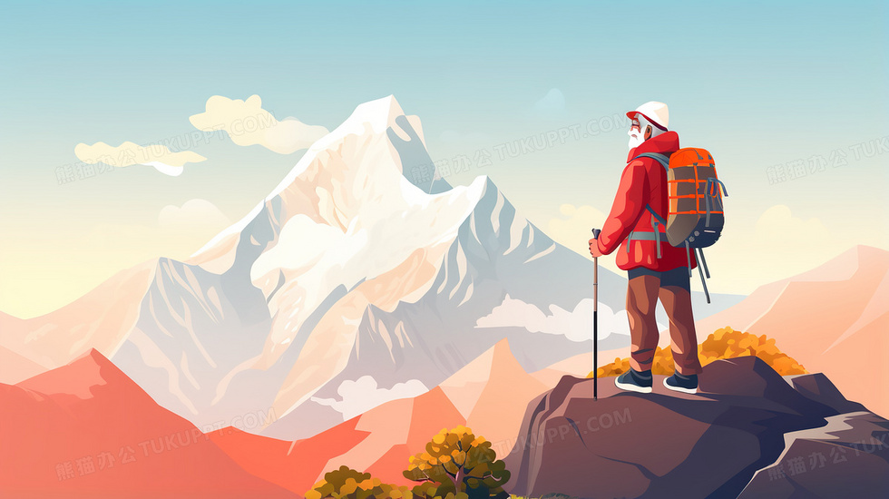 本作品内容为彩色登山的老年人插画, 格式为 jpg, 大小4 MB, 图片尺寸为2912 x 1632, 源文件无水印, 欢迎使用熊猫办公。 如认为平台内容涉嫌侵权,可通过邮件:tousu@tukuppt.com提出书面通知,我们将及时处理。