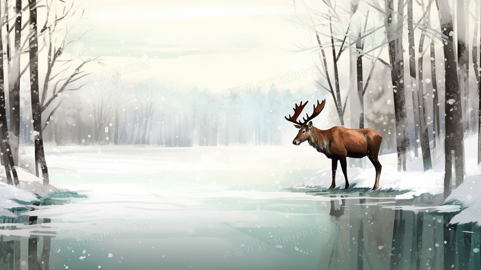 本作品内容为森林深处雪中行走的麋鹿风景插画, 格式为 jpg, 大小7 MB, 图片尺寸为2912 x 1632, 源文件无水印, 欢迎使用熊猫办公。 如认为平台内容涉嫌侵权,可通过邮件:tousu@tukuppt.com提出书面通知,我们将及时处理。