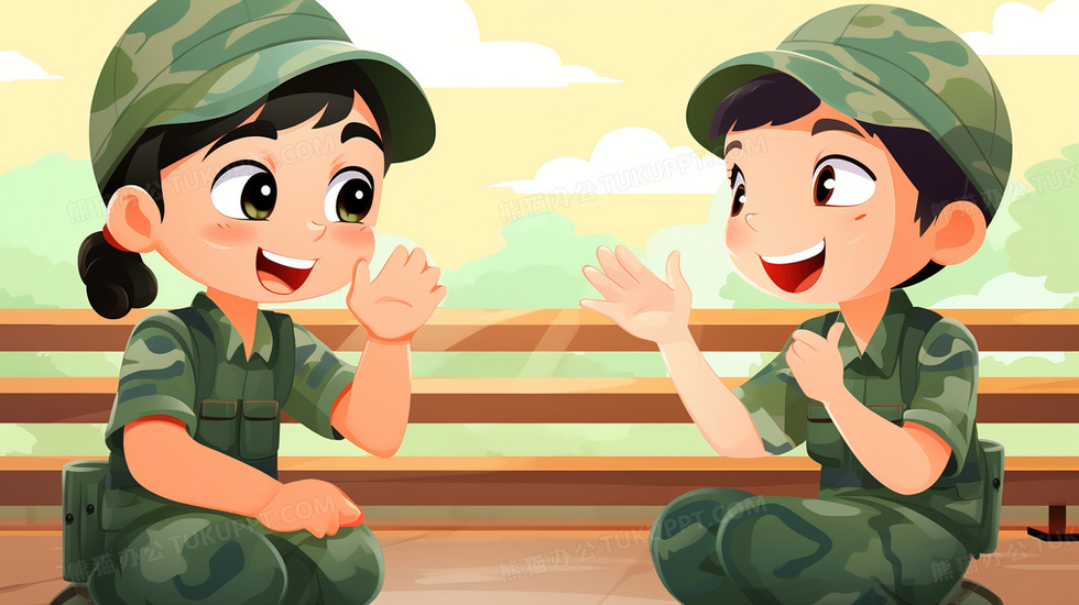 本作品内容为穿着迷彩服参加学校军训的学生们插画, 格式为 jpg, 大小4 MB, 图片尺寸为2912 x 1632, 源文件无水印, 欢迎使用熊猫办公。 如认为平台内容涉嫌侵权,可通过邮件:tousu@tukuppt.com提出书面通知,我们将及时处理。