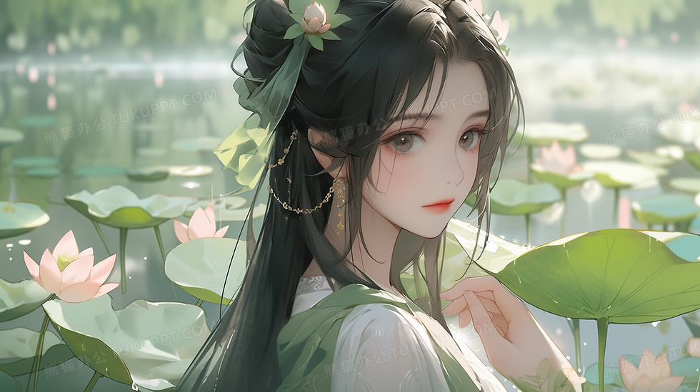 本作品内容为唯美古风美女荷花和少女创意插画, 格式为 jpg, 大小6 MB, 图片尺寸为2912 x 1632, 源文件无水印, 欢迎使用熊猫办公。 如认为平台内容涉嫌侵权,可通过邮件:tousu@tukuppt.com提出书面通知,我们将及时处理。