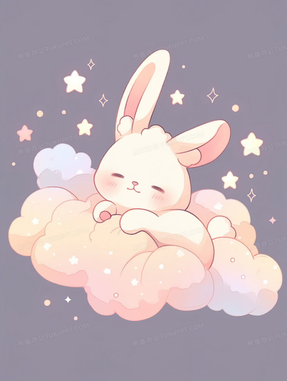 本作品内容为卡通可爱躺在云朵里的小兔子插画, 格式为 jpg, 大小4 MB, 图片尺寸为1856 x 2464, 源文件无水印, 欢迎使用熊猫办公。 如认为平台内容涉嫌侵权,可通过邮件:tousu@tukuppt.com提出书面通知,我们将及时处理。