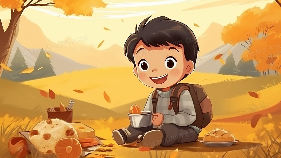 本作品内容为秋天户外金色草地上野炊的男孩插画, 格式为 jpg, 大小4 MB, 图片尺寸为2912 x 1632, 源文件无水印, 欢迎使用熊猫办公。 如认为平台内容涉嫌侵权,可通过邮件:tousu@tukuppt.com提出书面通知,我们将及时处理。