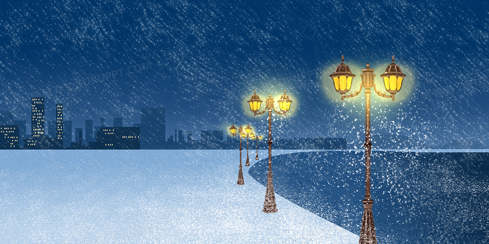 本作品内容为蓝色插画风雪夜路灯背景, 格式为 psd, 大小218 MB, 图片尺寸为4724 x 2362, 作品中背景图片无需修改, 源文件无水印,可以直接使用, 欢迎使用熊猫办公。 如认为平台内容涉嫌侵权,可通过邮件:tousu@tukuppt.com提出书面通知,我们将及时处理。