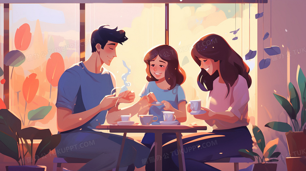 本作品内容为大家围坐在一起吃饭喝茶插画, 格式为 jpg, 大小4 MB, 图片尺寸为2912 x 1632, 源文件无水印, 欢迎使用熊猫办公。 如认为平台内容涉嫌侵权,可通过邮件:tousu@tukuppt.com提出书面通知,我们将及时处理。