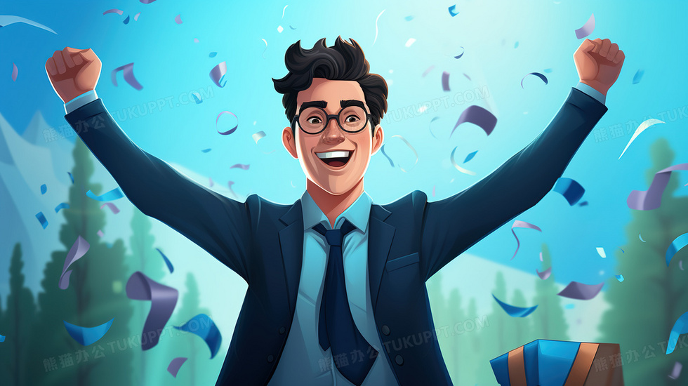 本作品内容为双手高举庆祝成功的男人插画, 格式为 jpg, 大小5 MB, 图片尺寸为2912 x 1632, 源文件无水印, 欢迎使用熊猫办公。 如认为平台内容涉嫌侵权,可通过邮件:tousu@tukuppt.com提出书面通知,我们将及时处理。