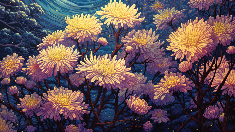本作品内容为秋天盛开的菊花插画, 格式为 jpg, 大小7 MB, 图片尺寸为2912 x 1632, 源文件无水印, 欢迎使用熊猫办公。 如认为平台内容涉嫌侵权,可通过邮件:tousu@tukuppt.com提出书面通知,我们将及时处理。