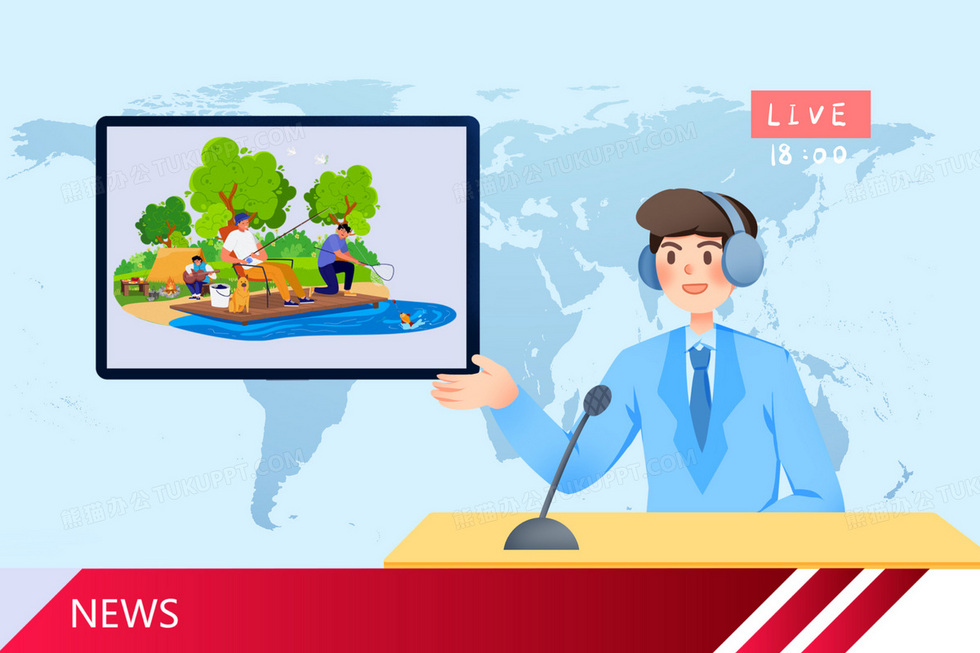 本作品内容为晚间新闻播报插画, 格式为 psd, 大小5 MB, 请使用软件PhotoShop(CC)打开, 源文件无水印, 欢迎使用熊猫办公。 如认为平台内容涉嫌侵权,可通过邮件:tousu@tukuppt.com提出书面通知,我们将及时处理。