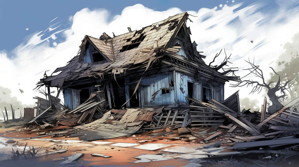 本作品内容为恶劣天气房屋倒塌插画, 格式为 jpg, 大小7 MB, 图片尺寸为2912 x 1632, 源文件无水印, 欢迎使用熊猫办公。 如认为平台内容涉嫌侵权,可通过邮件:tousu@tukuppt.com提出书面通知,我们将及时处理。