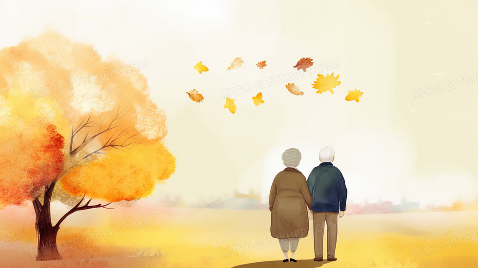 本作品内容为秋季老年人陪伴看风景插画, 格式为 jpg, 大小5 MB, 图片尺寸为2912 x 1632, 源文件无水印, 欢迎使用熊猫办公。 如认为平台内容涉嫌侵权,可通过邮件:tousu@tukuppt.com提出书面通知,我们将及时处理。