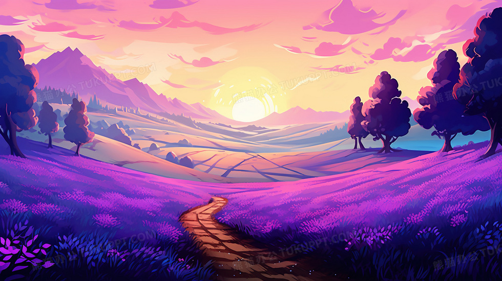 本作品内容为紫色唯美薰衣草风景插画, 格式为 jpg, 大小5 MB, 图片尺寸为2912 x 1632, 源文件无水印, 欢迎使用熊猫办公。 如认为平台内容涉嫌侵权,可通过邮件:tousu@tukuppt.com提出书面通知,我们将及时处理。