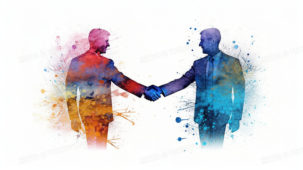 本作品内容为水彩画晕染人际交往友好握手插画, 格式为 jpg, 大小6 MB, 图片尺寸为2912 x 1632, 源文件无水印, 欢迎使用熊猫办公。 如认为平台内容涉嫌侵权,可通过邮件:tousu@tukuppt.com提出书面通知,我们将及时处理。