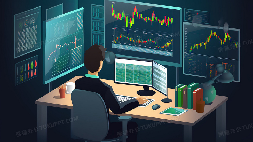 本作品内容为在电脑前研究股票行市的商务精英插画, 格式为 jpg, 大小5 MB, 图片尺寸为2912 x 1632, 源文件无水印, 欢迎使用熊猫办公。 如认为平台内容涉嫌侵权,可通过邮件:tousu@tukuppt.com提出书面通知,我们将及时处理。