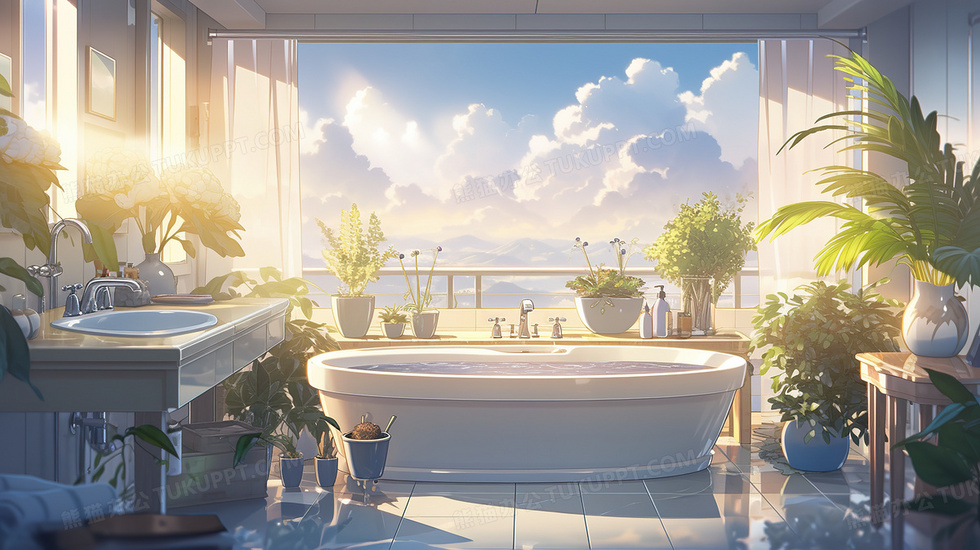 本作品内容为干净整洁的浴室卫生间场景插画, 格式为 jpg, 大小6 MB, 图片尺寸为2912 x 1632, 源文件无水印, 欢迎使用熊猫办公。 如认为平台内容涉嫌侵权,可通过邮件:tousu@tukuppt.com提出书面通知,我们将及时处理。