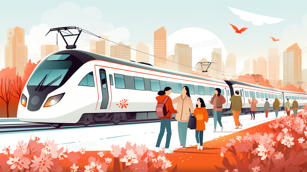 本作品内容为春节春运归家的列车插画, 格式为 jpg, 大小4 MB, 图片尺寸为2912 x 1632, 源文件无水印, 欢迎使用熊猫办公。 如认为平台内容涉嫌侵权,可通过邮件:tousu@tukuppt.com提出书面通知,我们将及时处理。