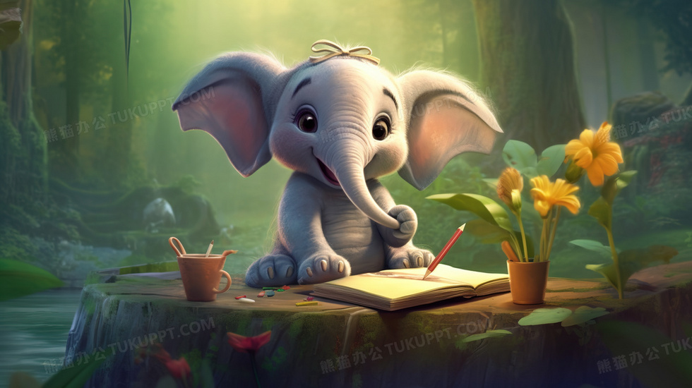 本作品内容为正在学习的卡通森林小象插画, 格式为 jpg, 大小5 MB, 图片尺寸为2912 x 1632, 源文件无水印, 欢迎使用熊猫办公。 如认为平台内容涉嫌侵权,可通过邮件:tousu@tukuppt.com提出书面通知,我们将及时处理。