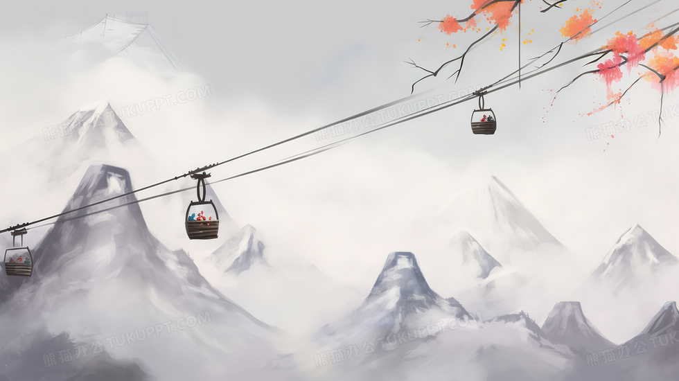 本作品内容为中国风水墨冬季雪山上的缆车, 格式为 jpg, 大小2 MB, 图片尺寸为2912 x 1632, 源文件无水印, 欢迎使用熊猫办公。 如认为平台内容涉嫌侵权,可通过邮件:tousu@tukuppt.com提出书面通知,我们将及时处理。