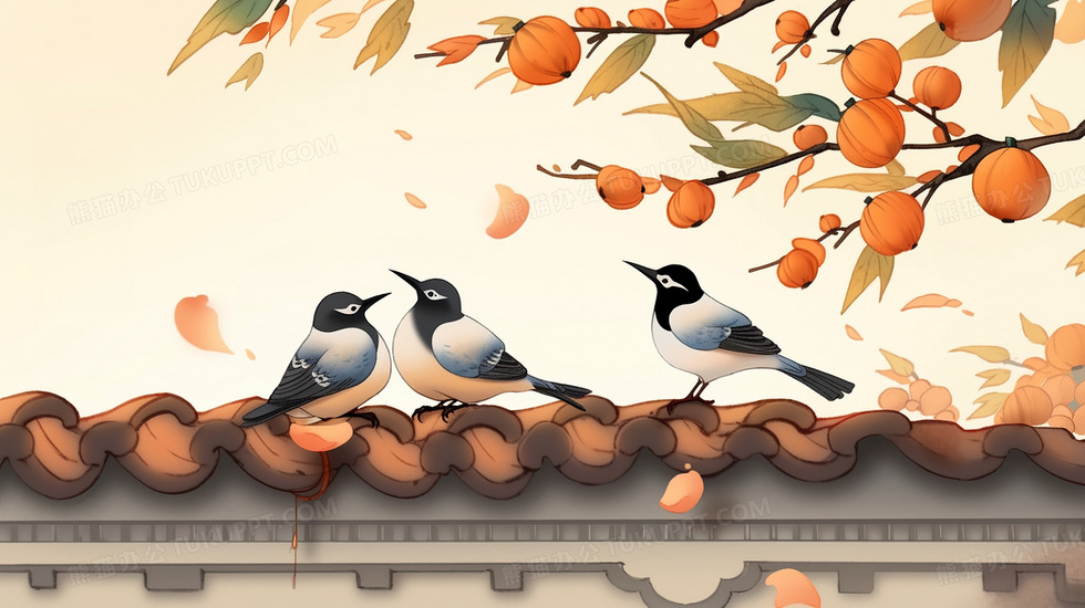 本作品内容为金秋十月屋檐上的柿子与喜鹊插画, 格式为 jpg, 大小2 MB, 图片尺寸为2912 x 1632, 源文件无水印, 欢迎使用熊猫办公。 如认为平台内容涉嫌侵权,可通过邮件:tousu@tukuppt.com提出书面通知,我们将及时处理。