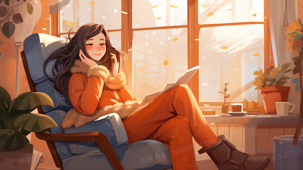 本作品内容为冬天室内温暖女孩窗边看风景插画, 格式为 jpg, 大小5 MB, 图片尺寸为2912 x 1632, 源文件无水印, 欢迎使用熊猫办公。 如认为平台内容涉嫌侵权,可通过邮件:tousu@tukuppt.com提出书面通知,我们将及时处理。