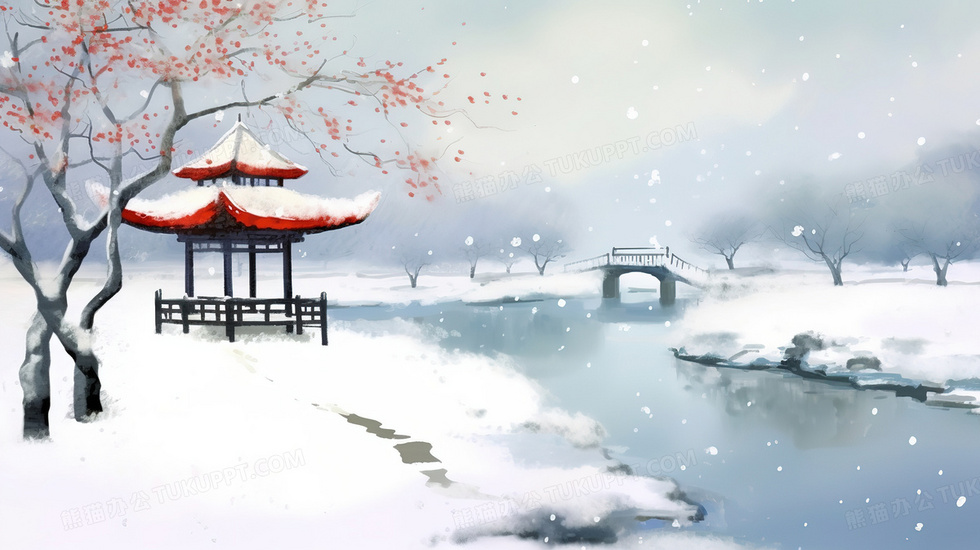 本作品内容为中国风冬季花园里的古典亭子和雪景, 格式为 jpg, 大小3 MB, 图片尺寸为2912 x 1632, 源文件无水印, 欢迎使用熊猫办公。 如认为平台内容涉嫌侵权,可通过邮件:tousu@tukuppt.com提出书面通知,我们将及时处理。