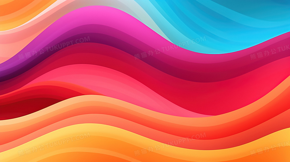 本作品内容为彩色唯美波纹抽象形状创意背景图, 格式为 jpg, 大小4 MB, 图片尺寸为2912 x 1632, 源文件无水印, 欢迎使用熊猫办公。 如认为平台内容涉嫌侵权,可通过邮件:tousu@tukuppt.com提出书面通知,我们将及时处理。