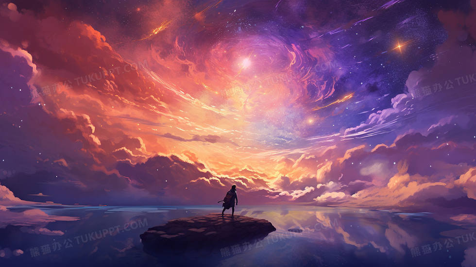 本作品内容为唯美梦幻云彩渐变人物剪影插画, 格式为 jpg, 大小7 MB, 图片尺寸为2912 x 1632, 源文件无水印, 欢迎使用熊猫办公。 如认为平台内容涉嫌侵权,可通过邮件:tousu@tukuppt.com提出书面通知,我们将及时处理。