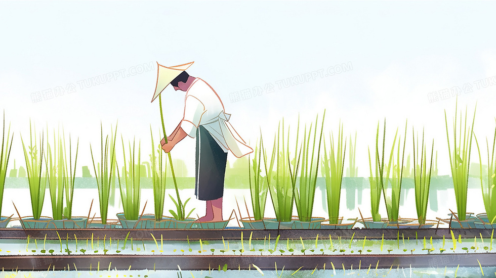 本作品内容为春天在稻田里插秧的农民插画, 格式为 jpg, 大小2 MB, 图片尺寸为2912 x 1632, 源文件无水印, 欢迎使用熊猫办公。 如认为平台内容涉嫌侵权,可通过邮件:tousu@tukuppt.com提出书面通知,我们将及时处理。