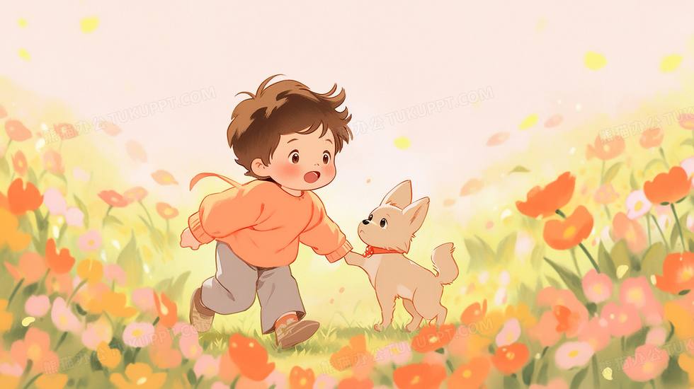 本作品内容为春天鲜花丛中的孩子和小动物插画, 格式为 jpg, 大小2 MB, 图片尺寸为2912 x 1632, 源文件无水印, 欢迎使用熊猫办公。 如认为平台内容涉嫌侵权,可通过邮件:tousu@tukuppt.com提出书面通知,我们将及时处理。