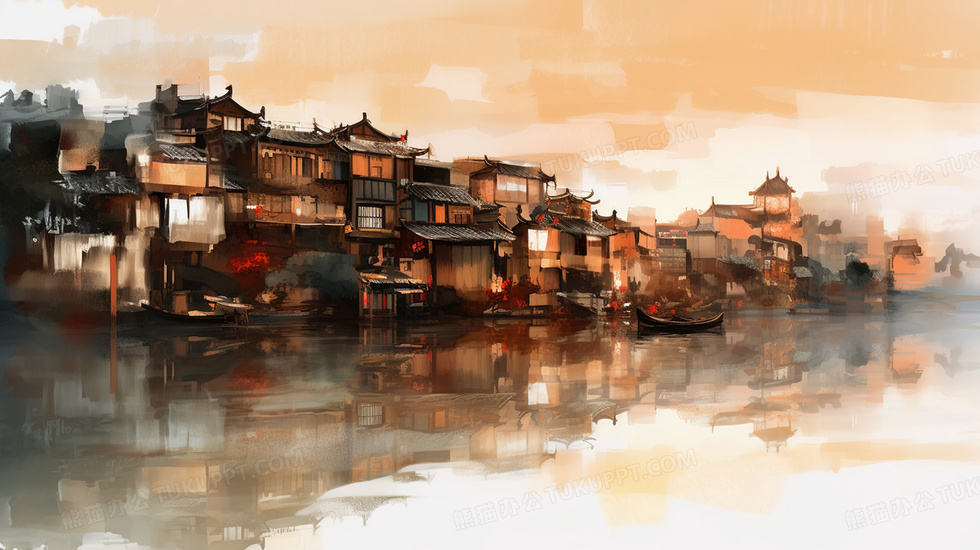 本作品内容为江南水乡古镇插画, 格式为 jpg, 大小5 MB, 图片尺寸为2912 x 1632, 源文件无水印, 欢迎使用熊猫办公。 如认为平台内容涉嫌侵权,可通过邮件:tousu@tukuppt.com提出书面通知,我们将及时处理。
