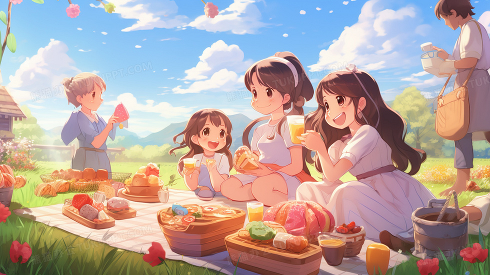 本作品内容为春天在绿草地上野餐的孩子们插画, 格式为 jpg, 大小5 MB, 图片尺寸为2912 x 1632, 源文件无水印, 欢迎使用熊猫办公。 如认为平台内容涉嫌侵权,可通过邮件:tousu@tukuppt.com提出书面通知,我们将及时处理。
